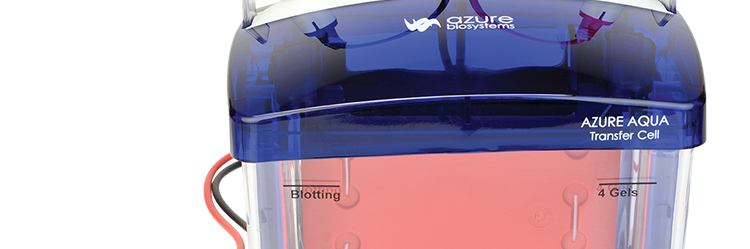 Azure Aqua Transfer Cell AçıklamaDokümanlar Azure Aqua Vertical Gel Running System Azure Aqua Transfer Cell The Azure Aqua Transfer Cell is used for transferring two mini gels to membranes for Western blotting experiments (wet transfer). The transfer cassettes and electrode core are colored for directionality which makes transferring easy and straightforward. Perform a quick, 1…