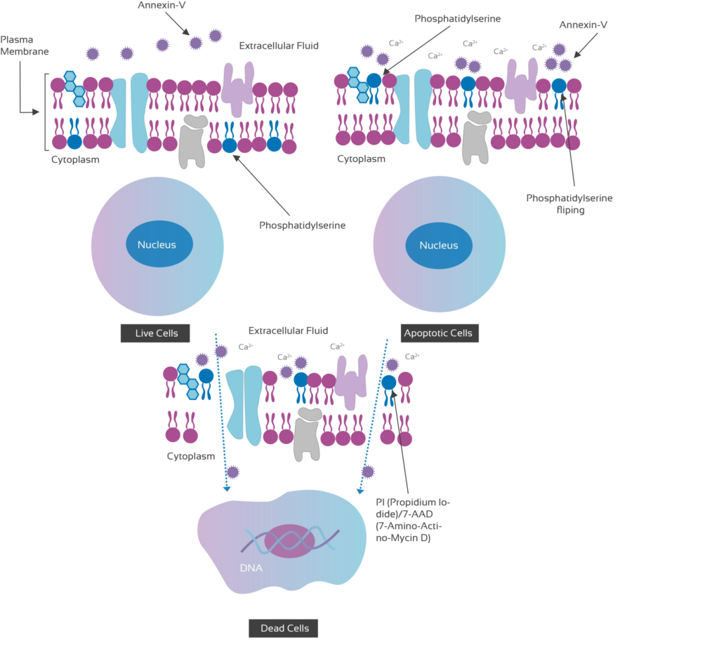 The human vascular anticoagulant, Annexin V is a 35-36KDa Ca2+ dependent phospholipids binding protein that has a high affinity for PS. In healthy cells, PS is located on the cytoplasmic surface of the plasma membrane.