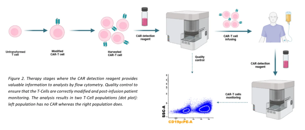 This therapy has gained relevance due to its efficacy, and detecting CAR T-cells tools has become a critical need, both to check that they have been correctly modified, and to monitor them after the reinfusion, since they have a limited life span.